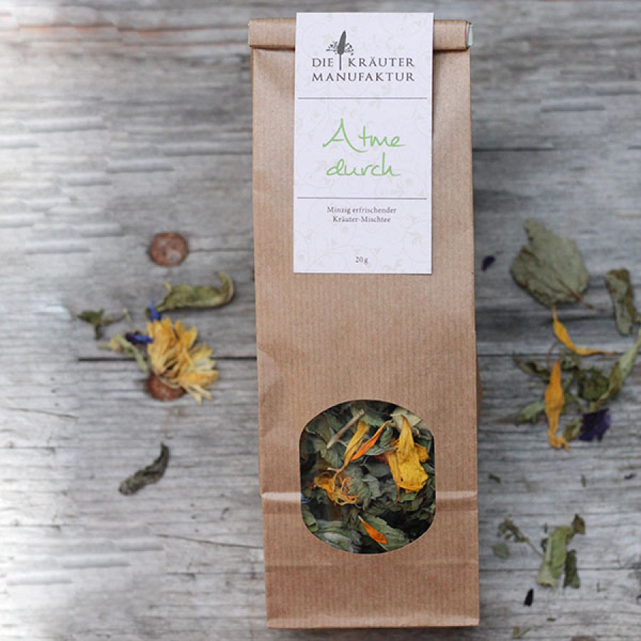 Über 30 qualifizierte Heilpflanzenfachfrauen, Natur- und Kräuter- pädagoginnen aus Baden-Württemberg haben sich zusammengeschlossen um gemeinsam Kräuterköstlichkeiten herzustellen. Ihr Anbaugebiet erstreckt sich von der sonnigern Rheinebene, über die Höhen des Schwarzwaldes bis hin zur fruchtbaren Bodensee-Region. Auf ihren Höfen und Gärten kultivieren sie unter Einhaltung der Grundsätze biologischer Landwirtschaft über 60 verschiedene Kräuter, welche von Hand gepflückt werden. Zecks der Erhaltung der Inhaltsstoffe und Aromen werden die Blätter ganz gelassen und nicht gebrochen. Dies zeichnet unter anderem die hochwertige Qualität der Produkte der Kräutermanufaktur aus.
