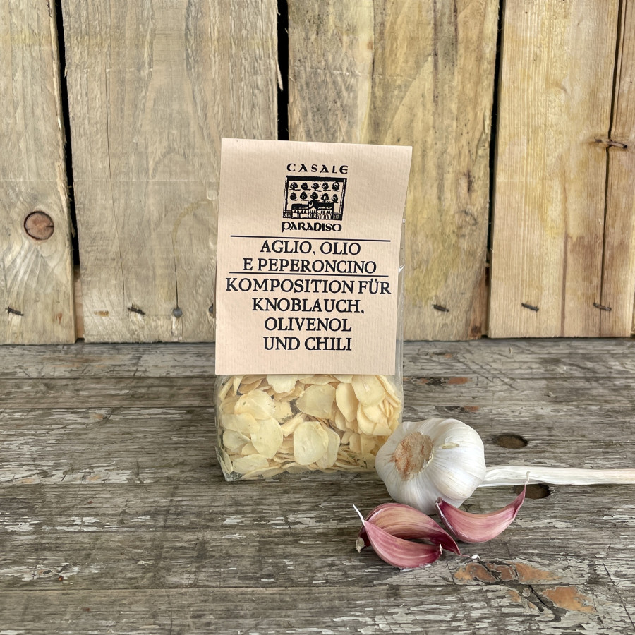 Zutaten: Knoblauch 70%, Petersilie, Chili 10,5%, Salz, Konservierungsstoff: Schwefeldioxid fett: potentiell allergene Substanz