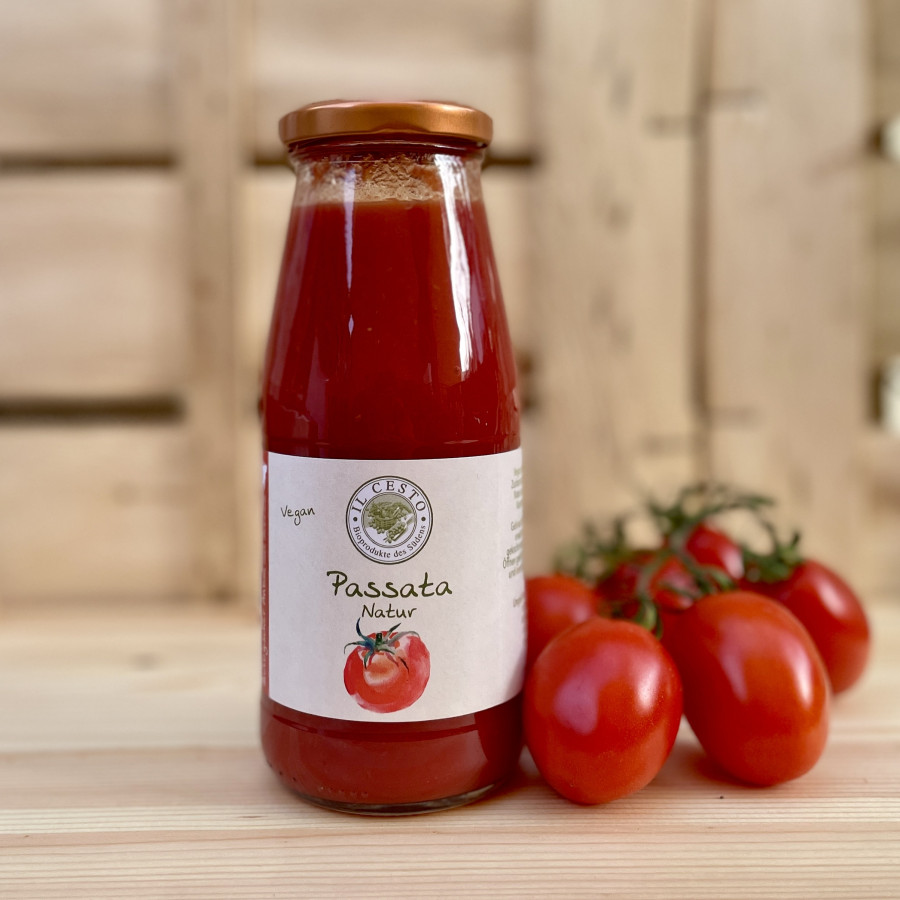 Passierte Tomatensoße in Bio Qualität. Ideal zum Einkochen, sowie verfeinern von anderen Soßen.