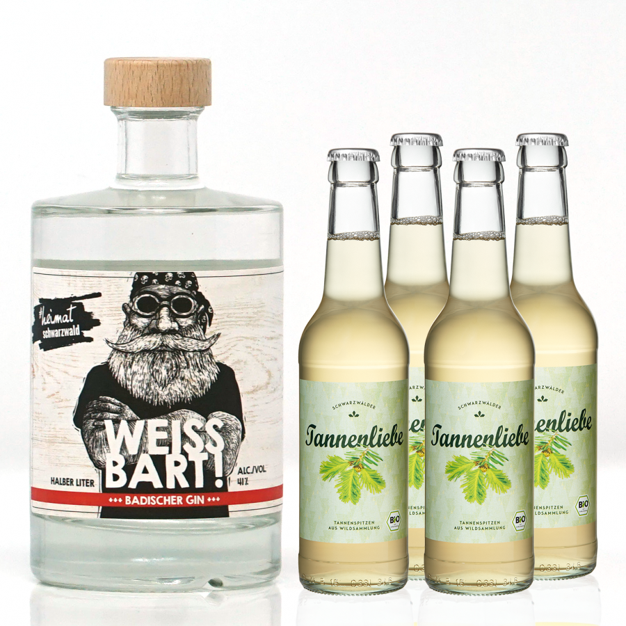 Eine bessere Kombi als Gin & Tonic gibt es doch gar nicht! Daher haben wir für Euch dieses tolle Set zusammengestellt. Weissbart-Gin mit Tannenliebe – beide Produkte kommen aus dem Schwarzwald und könnten nicht besser zusammen harmonieren.