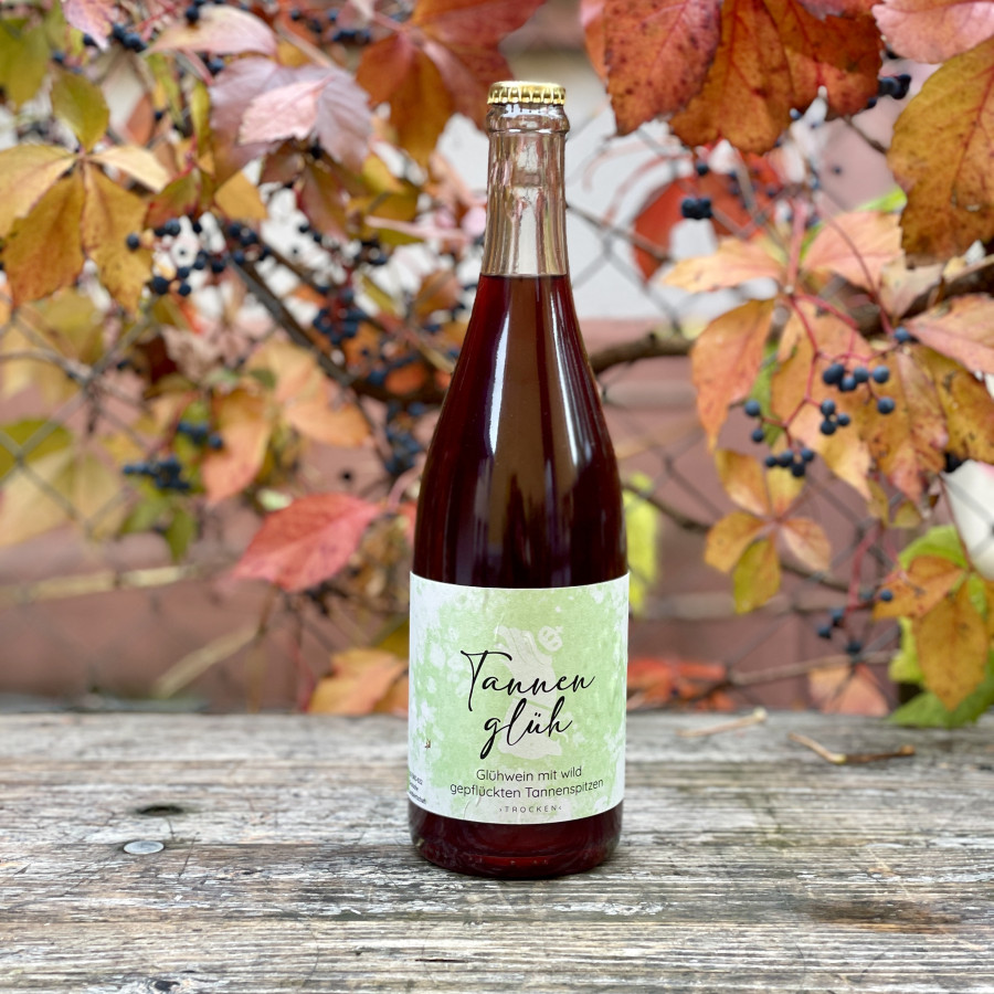 Tannenglüh, die fruchtig, herbe Alternative aus dem Schwarzwald. Rotwein gewürzt mit Tannennadeln und Tannenhonig. Der Spätburgunder bringt den Geschmack von Beeren und Kirschen mit, während die Tannennadeln dem Ganzen ein würzig und frisches Aroma verleihen. Der Tannenhonig rundet dabei das herbe Aroma ab und fügt eine süße Note hinzu. Tannenglüh ist unsere regionale Antwort auf den klassischen Glühwein, fruchtig, herb und nicht zu süß.