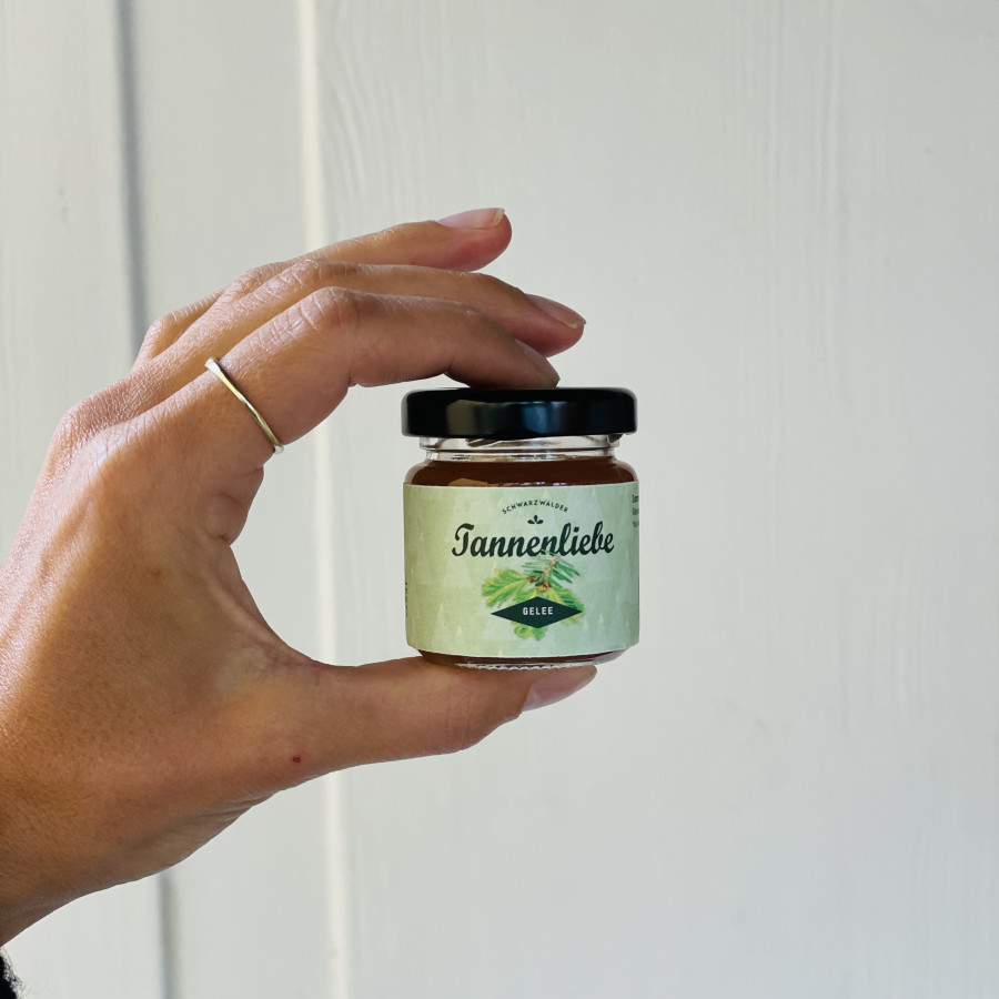 Neben der Tannenliebe Limo gibt es auch ein Gelee, das nach Wald schmeckt. Eine tolle Alternative aufs Brot, zu Käse oder zum Verfeinern von Saucen, Dressings und zum Backen.
